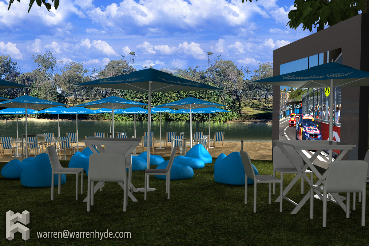 set on Macintosh Island in the sunny Gold Coast, this bar setting had water views and ample greenery to frame the big screen action of the supercars