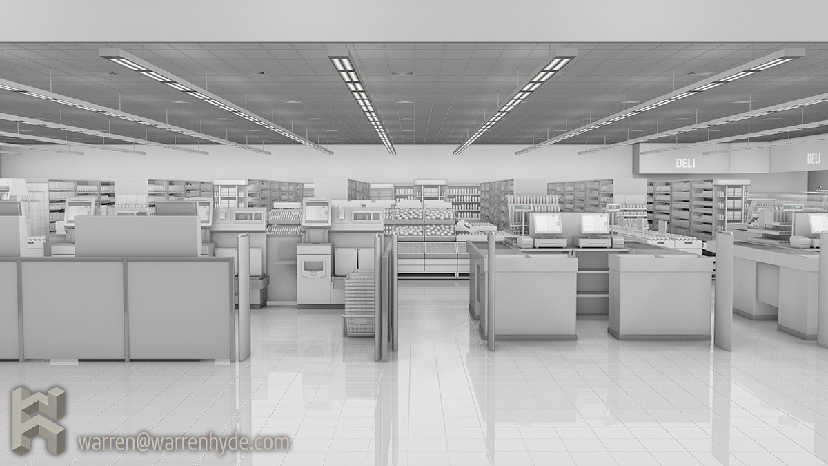 Greyscale supermarket ready for colour product placement